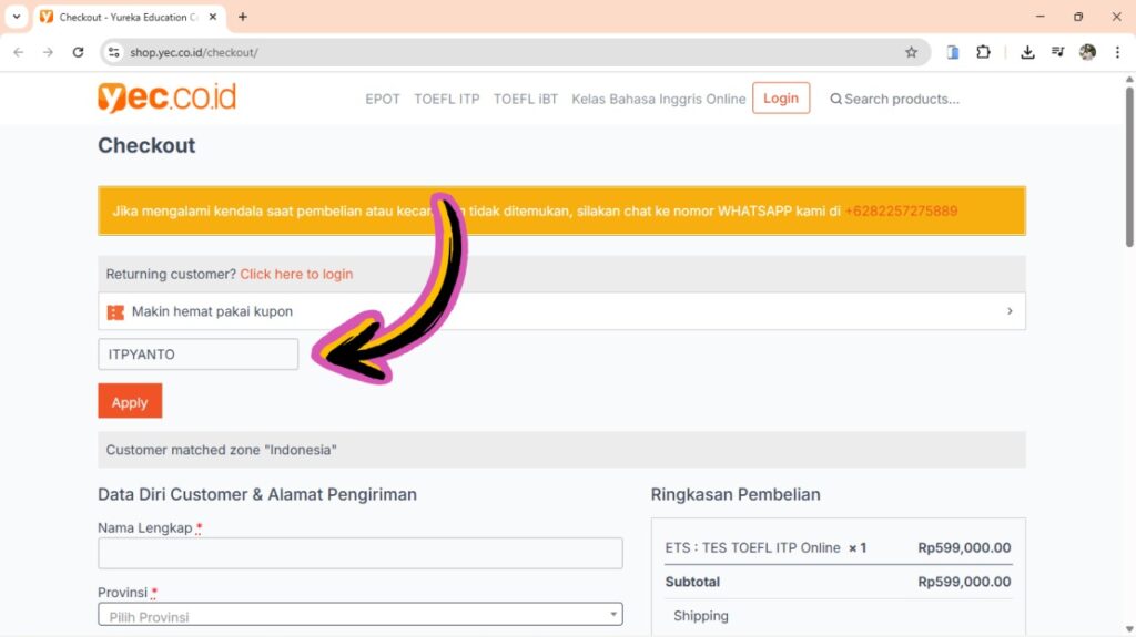 Konsultasi seputar TOEFL, IELTS, TOEIC, dan berbagai tes Bahasa Inggris lainnya secara fleksibel lewat WhatsApp langsung bersama Pak Yanto Tanjung.
